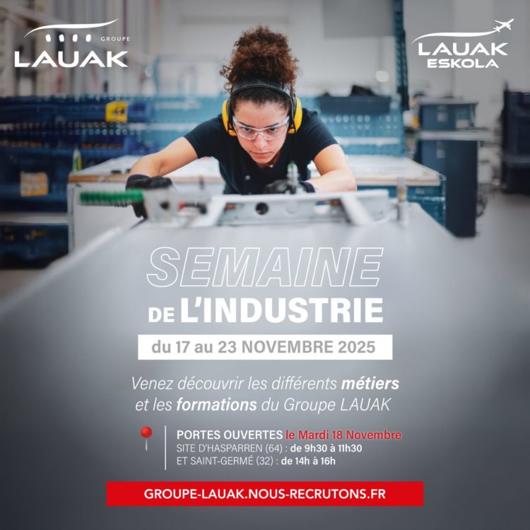 Sur inscription : https://www.groupe-lauak.com/semaine-de-lindustrie/ Une belle occasion de plonger au cœur de l’aéronautique et de rencontrer ceux qui font l’industrie de demain.